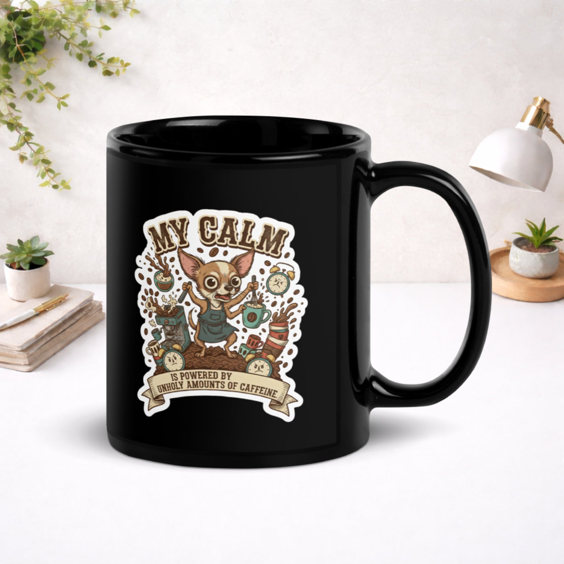 Overcaffeinated but Operational - Black Glossy Mug